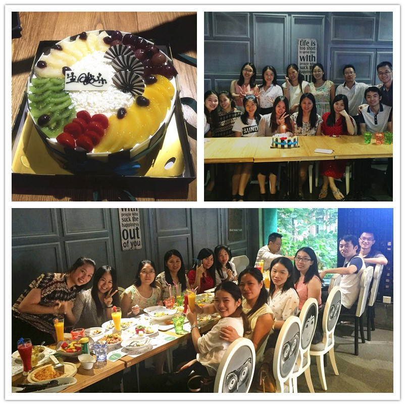 2016年7月22日晚,營(yíng)銷中心第一、二季度員工生日會(huì)在綠茵閣餐廳舉行。生日會(huì)當(dāng)晚,壽星們少了平日的幾分忙碌,多了幾許濃濃的人情味,大家歡聚在一齊用餐,同時(shí)公司還為壽星們準(zhǔn)備了精美的小禮物。現(xiàn)場(chǎng)呈現(xiàn)一派歡樂祥和的氣氛,壽星一起許愿吹蠟燭,然后一起分享生日蛋糕的時(shí)候,生日會(huì)的氣氛推向了高潮。一張張燦爛的笑臉,一聲聲真誠(chéng)的祝愿,一樣的生日聚會(huì),每次都給“光華人”不同的感動(dòng)!