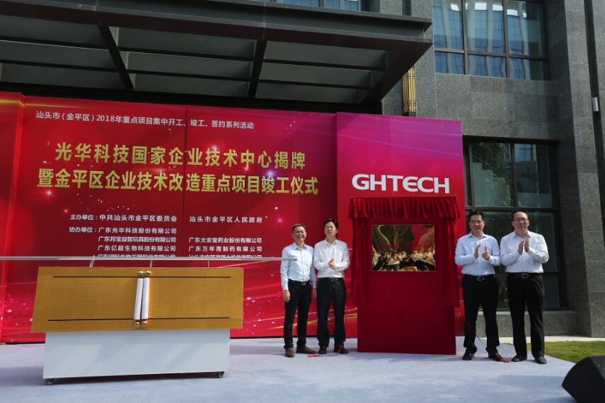 10月24日,是個喜慶的日子。這一天,廣受矚目的港珠澳大橋正式通車,同時也迎來了盛大的光華科技國家企業技術中心揭牌儀式。出席儀式的嘉賓有中國工程院院士吳鋒教授,汕頭市委書記方利旭、市委常委邱奕輝、副市長林曉湧、金平區區長林錫波、市委副秘書長李翔,光華科技董事長陳漢昭以及其他汕頭市、區政府領導,以及其他企業代表。