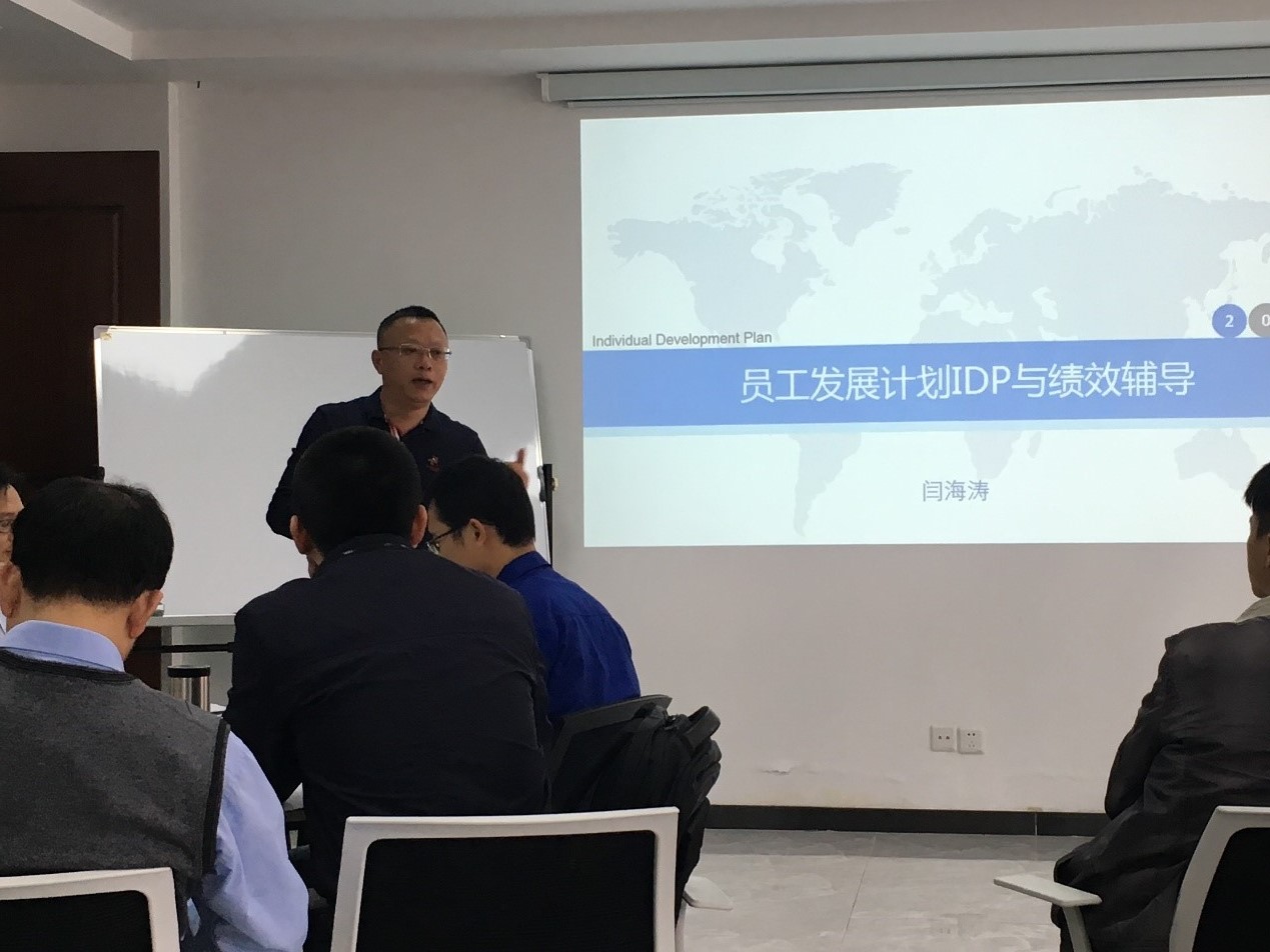 公司特別邀請了行業內資深培訓講師閆老師進行授課。閆以其多年的管理實踐、顧問經驗及相關企業案例,結合公司的實際情況,通過風趣的語言,深入淺出地闡述課程知識點。本次培訓課程以績效經理的角色認知為開端,通過冰山理論為員工畫像,利用九宮格進行人才盤點,使用《部屬培育標準卡》、《成長卡》、《培育卡》等工具制定員工成長計劃(IDP),繼而有針對性地進行績效輔導與結果面談,通過“學習路徑圖”、“一崗雙卡”等方式完善員工的培養及職業發展。