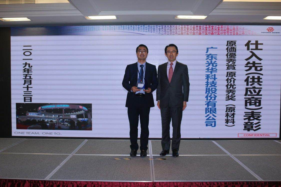 今日,豐田合成(中國(guó))投資有限公司2019年供應(yīng)商系列會(huì)議在上海采購(gòu)中心繼續(xù)舉行。光華科技在大會(huì)上再次獲得表彰,蟬聯(lián)原價(jià)優(yōu)秀獎(jiǎng)!