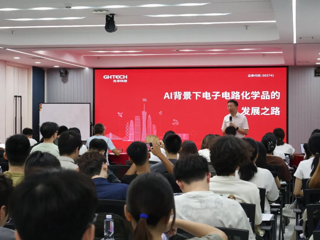 如今,AI技術(shù)的浪潮正席卷全球,為電子電路化學品領(lǐng)域也帶來了新的機遇與挑戰(zhàn)。劉主任關(guān)于《AI背景下電子電路化學品的發(fā)展之路》的內(nèi)容分享,為廣工的師生們帶來了一場企業(yè)視角下關(guān)于電子電路行業(yè)解讀。這次分享讓廣工學子對行業(yè)現(xiàn)狀和AI與化工學科的相關(guān)性有了更加清晰的認識,進一步點燃了大家探索行業(yè)前沿技術(shù)、投身科技創(chuàng)新實踐的熱情。