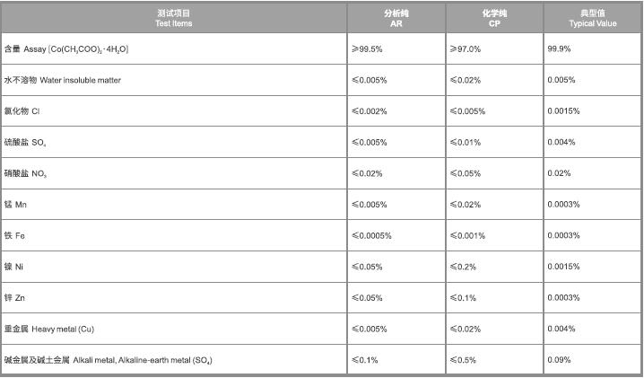 • 英文名: Cobalt(II) acetate tetrahydrat